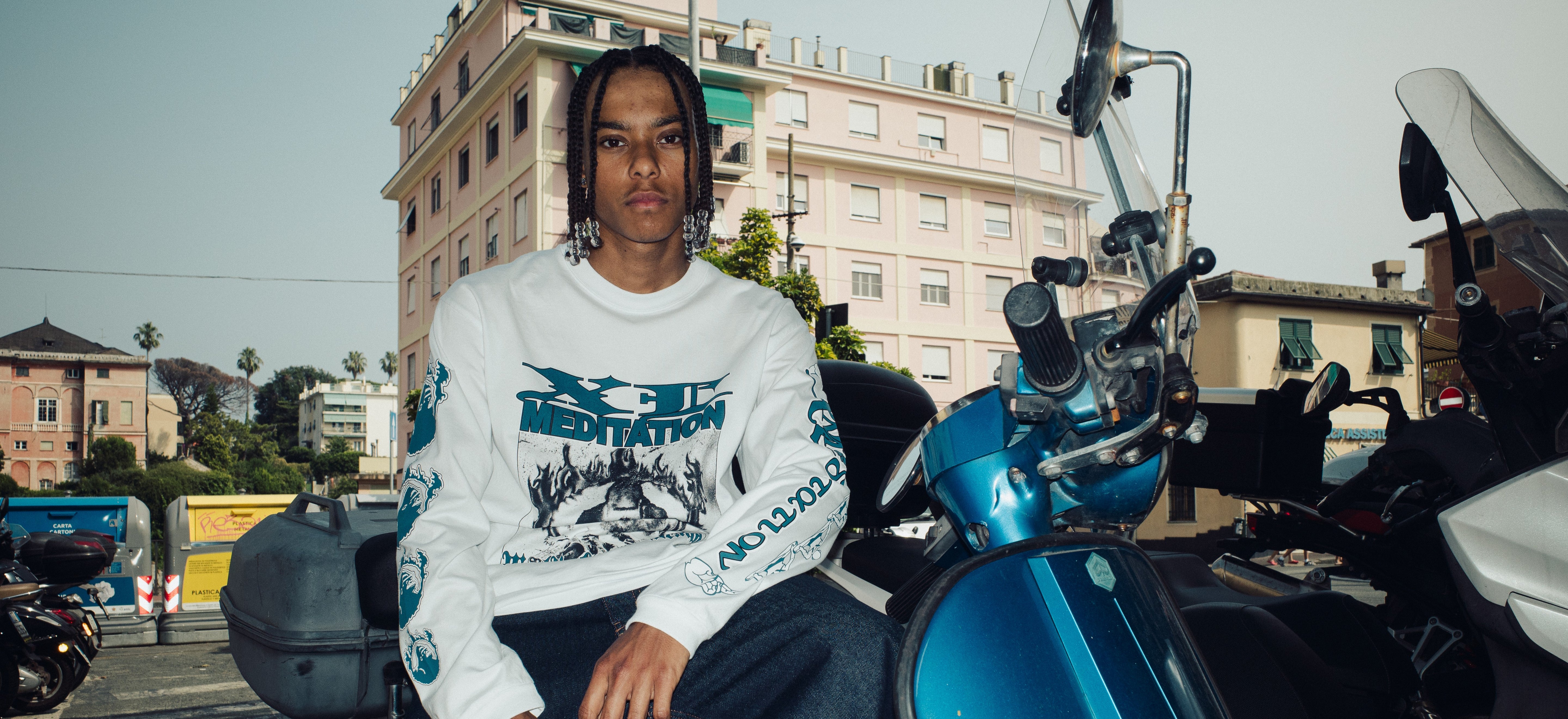 Every reference blends and merges. Strong cultural imaginaries such as the Krishnacore music scene combine with workwear, outdoor, and skate.
